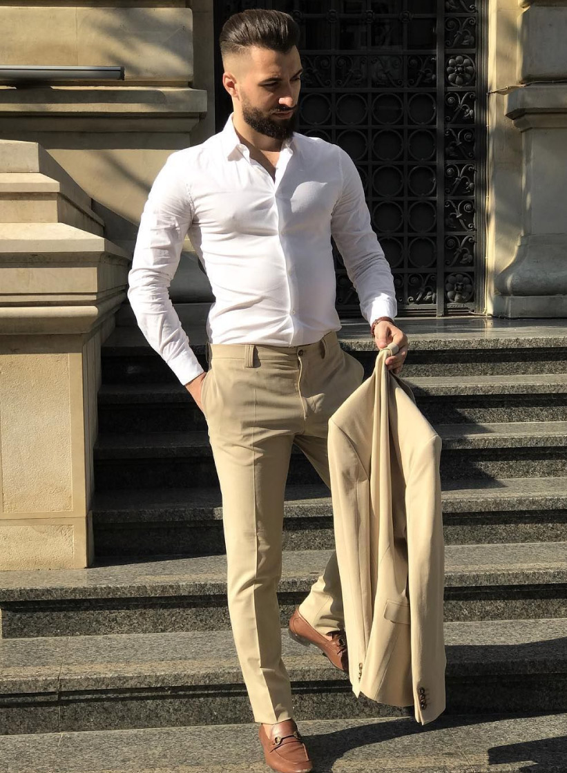 Camisa y pantalón de vestir. Chaqueta opcional. No T-shirts.
