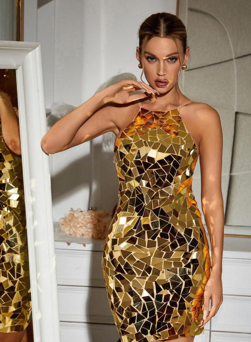 Vestido corto, cocktail o maxi dress. Brillo corporal